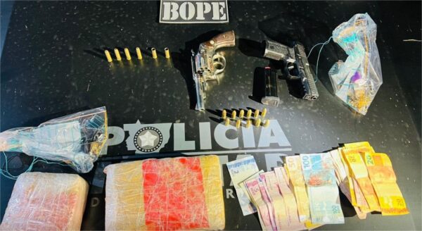 Uma casa residência na rua Pantaneira era apontada como ponto de tráfico de drogas e alvo de monitoramento. Ao chegarem ao local, os policiais avistaram dois homens em frente ao imóvel. Ao perceberem a aproximação da viatura, a dupla ignorou as ordens de parada e correu para o interior da casa.