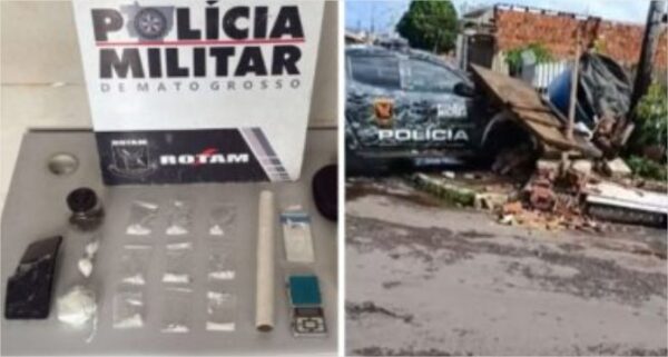 Um criminoso foi preso pelo Batalhão de Rondas Ostensivas Tático Móvel (Rotam) na tarde de segunda-feira (23), no bairro Novo Mato Grosso, em Cuiabá, após uma perseguição policial que terminou com apreensão de drogas e materiais utilizados no tráfico. A viatura atingiu o muro de uma residência, mas nenhum dos agentes ficou ferido.