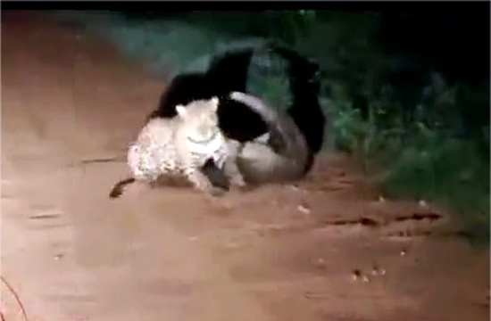 Nas imagens, é possível ver que os animais se encaram por alguns instantes antes de partirem para o confronto físico. Após segundos, o tamanduá consegue se defender e afastar o felino, que recua e segue em direção à mata.